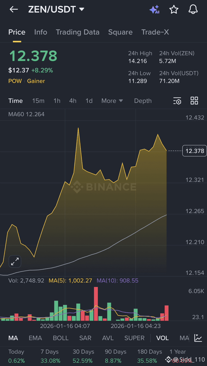 This shows ZEN isn’t just having a one-candle move. There’s broader momentum behind it.