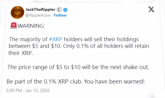 Analityk kryptowalut JackTheRippler wydał ważny ostrzeżenie dla społeczności XRP. Choć wielu oczekuje, że XRP osiągnie poziom od 5 do 10 dolarów, eksperci ostrzegają, że ten zakres może być ogromnym wstrząsem zaprojektowanym w celu oddzielenia detalicznych inwestorów od "Elity 0,1%".