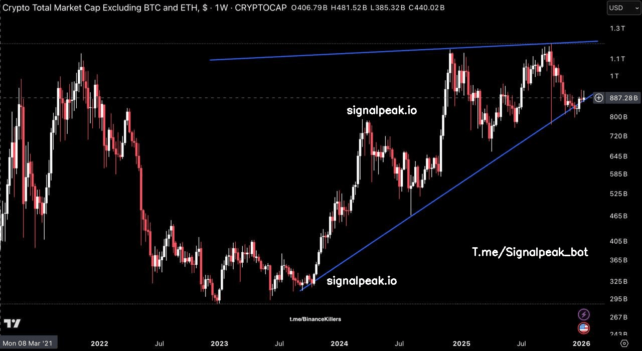 Kapitalizacja rynku altcoinów nadal utrzymuje się powyżej swojego długoterminowego wsparcia, utrzymując szerszą strukturę nienaruszoną.