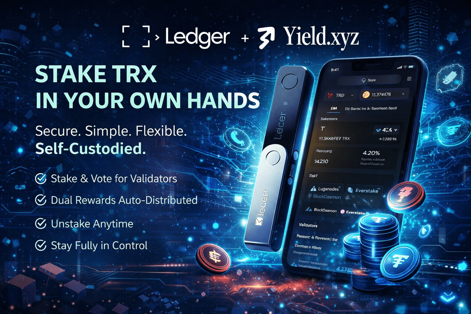 Połącz to z @Ledger, najbardziej zaufanym portfelem sprzętowym w Web3, z ponad 6 milionami urządzeń w obiegu, a stakowanie TRX w końcu przechodzi w standard samo-powierniczy, gotowy do produkcji.