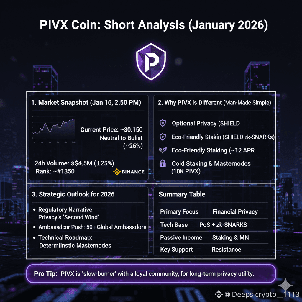 PIVX (Private Instant Verified Transaction) is a pioneer in the privacy space, focusing on user sovereignty and financial anonymity. As we enter 2026, it remains a resilient "OG" project that has evolved from a simple Dash fork into a sophisticated Proof-of-Stake (PoS) ecosystem.