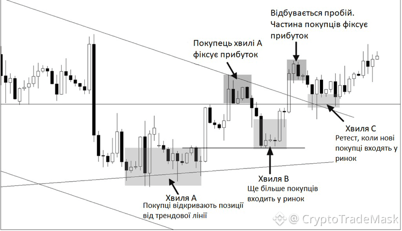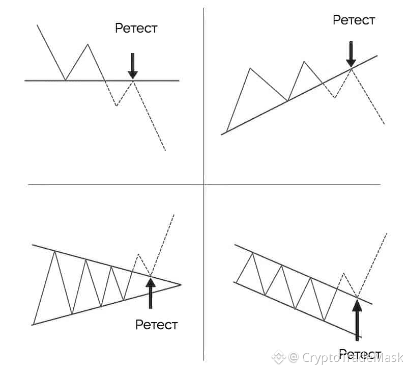 3. Фільтрація фейків: Більшість хибних пробоїв повертаються під рівень і там залишаються. Ретест відсікає такі пастки.