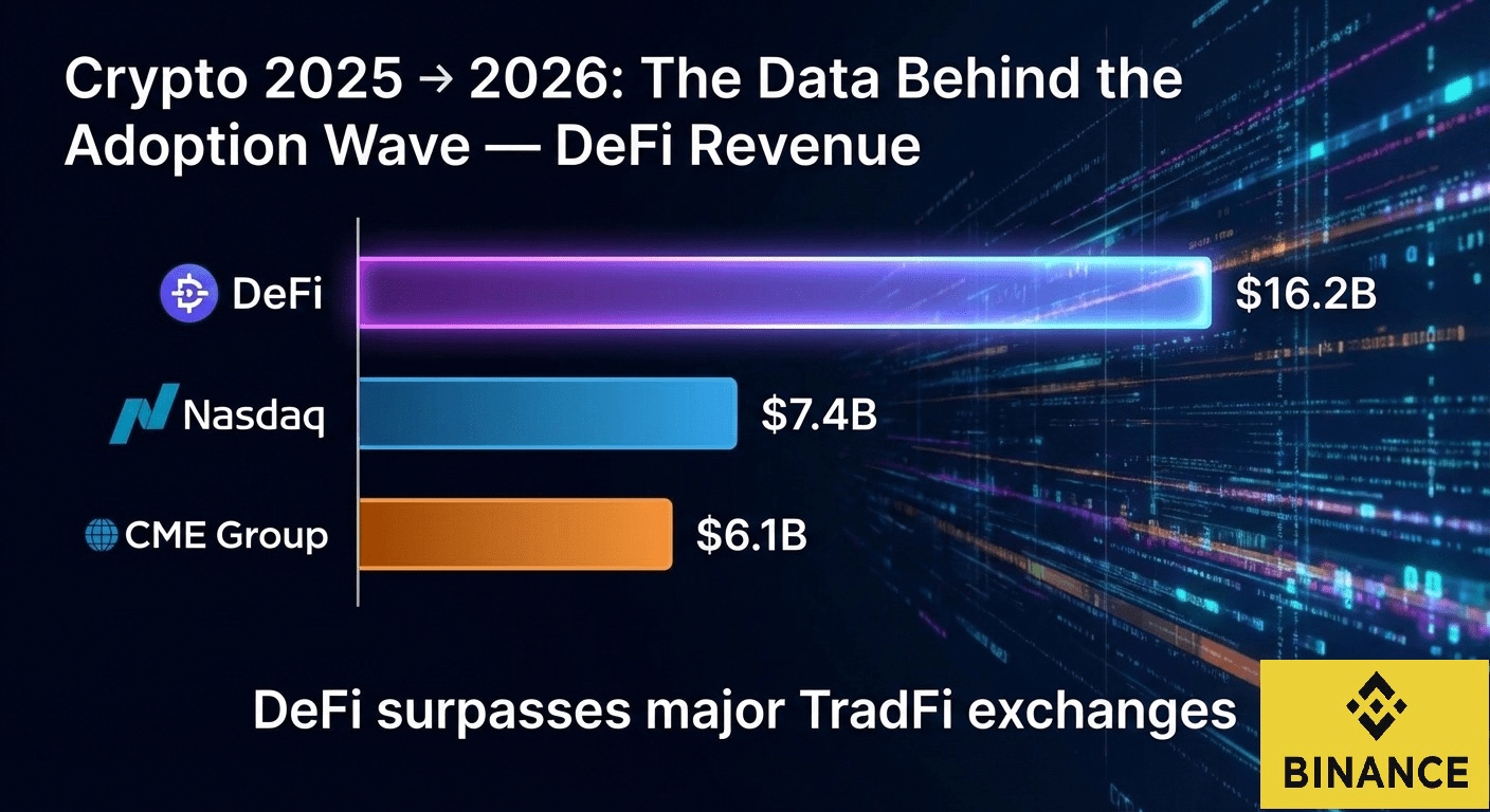 Razem te wskaźniki wskazują na jasny wniosek: 2026 będzie rokiem zdominowanym przez adopcję, zdefiniowanym przez integrację instytucjonalną, ekspansję stablecoinów, ciągły wzrost dochodów DeFi oraz wzrost ekosystemów blockchain o wysokiej przepustowości.