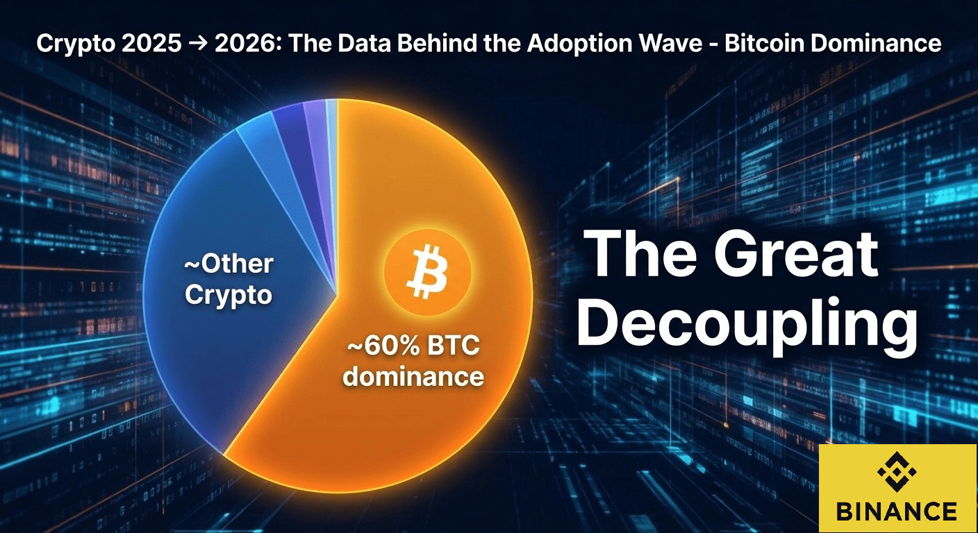 Protokół DeFi wygenerował 16,2 miliarda dolarów przychodu, przewyższając łączne zyski Nasdaq i CME Group, co stanowi historyczny kamień milowy dla zdecentralizowanej infrastruktury finansowej. Bitcoin zakończył rok z ~60% dominacją, odzwierciedlając konsolidację inwestorów w BTC w obliczu globalnej niepewności — trend, który Binance Research identyfikuje jako Wielkie Odłączenie.