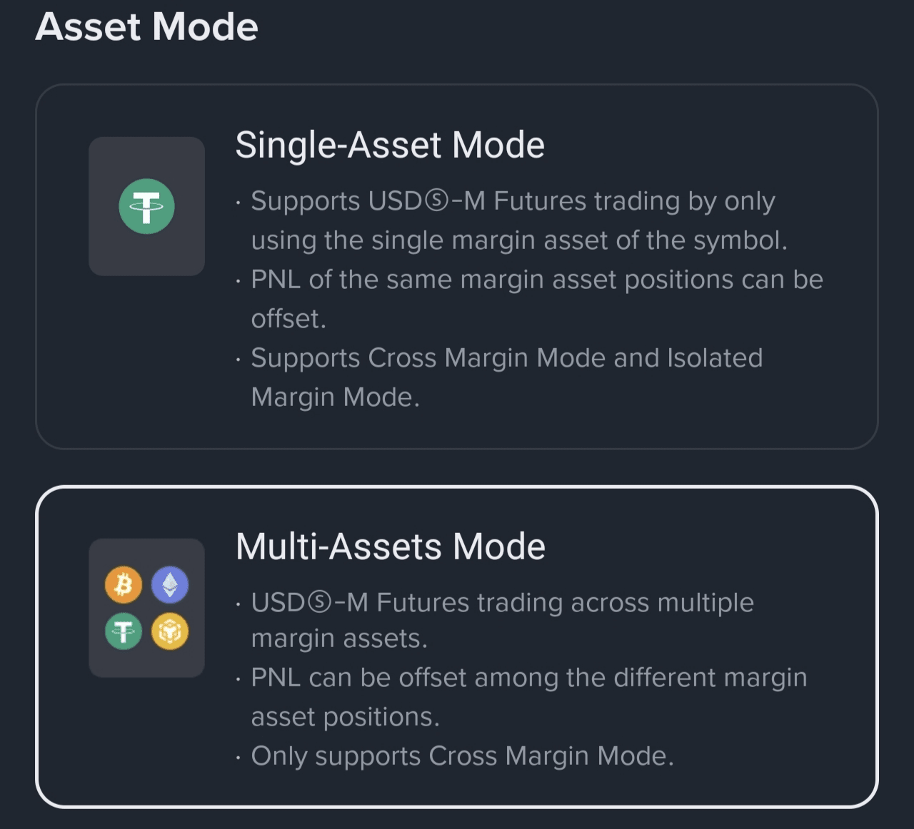 Alright, start by switching on Multi-Assets Mode in your Futures account. Unlike Single-Asset Mode where you're stuck with one collateral type, this lets you throw in multiple assets like $BTC , $ETH or $BNB to back your trades. Profits and losses (PNL) from different positions can cancel each other out, and it's all Cross Margin – so your whole wallet works together like a team.