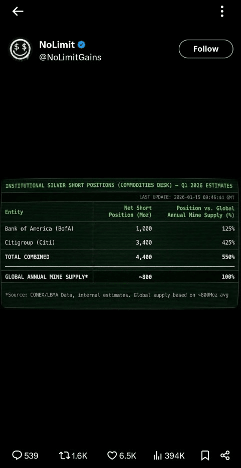 Jeśli srebro będzie się nadal podnosić, #xag presja na główne banki w USA stanie się egzystencjalna.