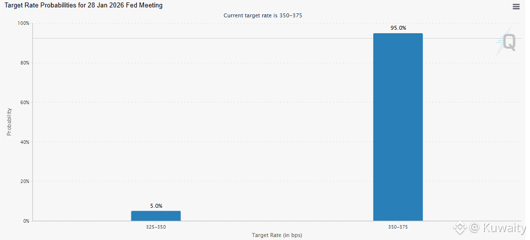 تشير أداة CME FedWatch، كما هو موضح أدناه، إلى أن المشاركين في السوق يقدرون حاليًا احتمالًا يزيد عن 95% بأن البنك المركزي الأمريكي سيبقي على أسعار الفائدة دون تغيير في اجتماعه المقرر في 27-28 يناير.