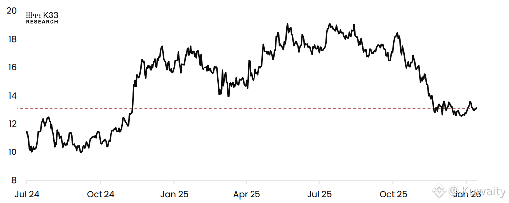 رسم بياني لنسبة BTC/SPX. المصدر: K33 Research