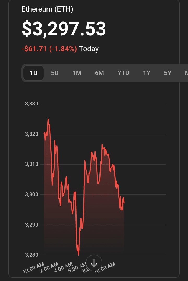 #ETH handluje wokół $3.3K, cofa się wraz z szerszym rynkiem, ale utrzymuje się w ustalonych zakresach.
