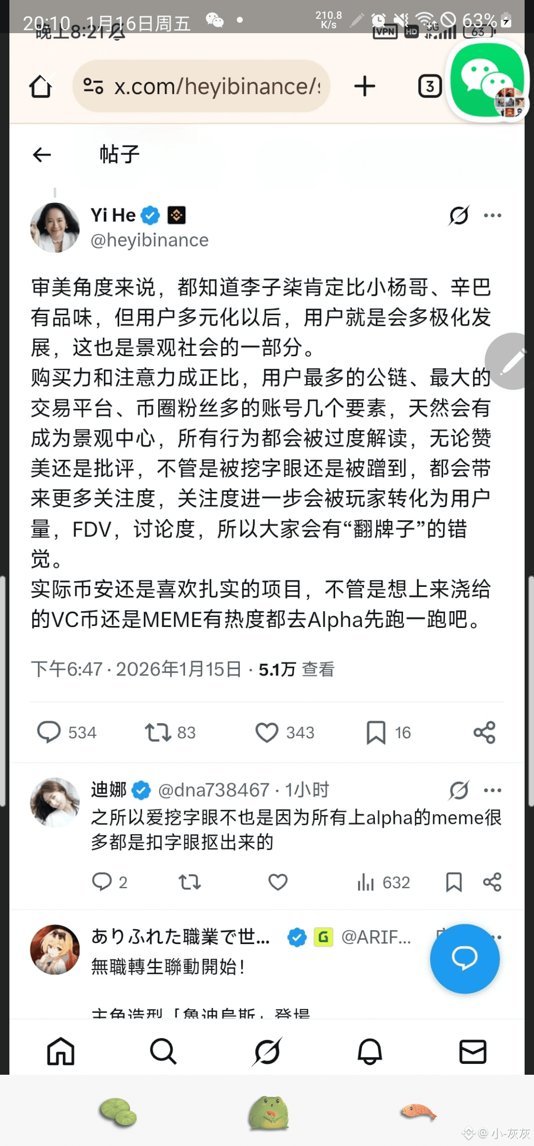 市场波动时,何一一边提醒用户注意信息安全,一边推动1亿美元生态基金落地。行业领袖的视野,决定了整个赛道的方向。#币安 #何一姐 #MEME