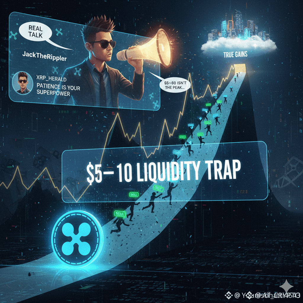 We've seen this movie before in markets where a few big players hold the reins: retail investors get all excited during a pump and start dumping like it's Black Friday. Jack's post nails it—the bulk of XRP peeps will probably hit the sell button in that $5–$10 window. But here's the twist: a bunch of analysts reckon this is just the launchpad for XRP's real breakout, and only the die-hards will weather the storm.