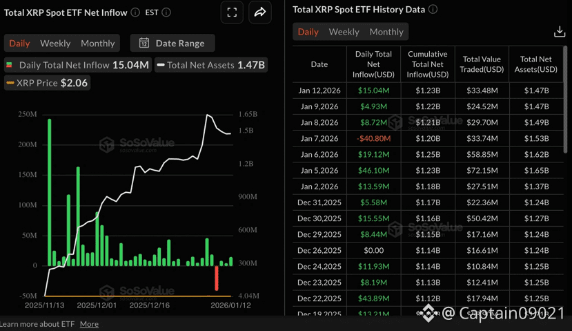 $XRP Ripple (XRP) is trading sideways above support at $2.00 at the time of writing on Tuesday. Recovery has remained elusive despite steady inflows into spot Exchange Traded Funds (ETFs), which have cumulatively attracted $1.23 billion.