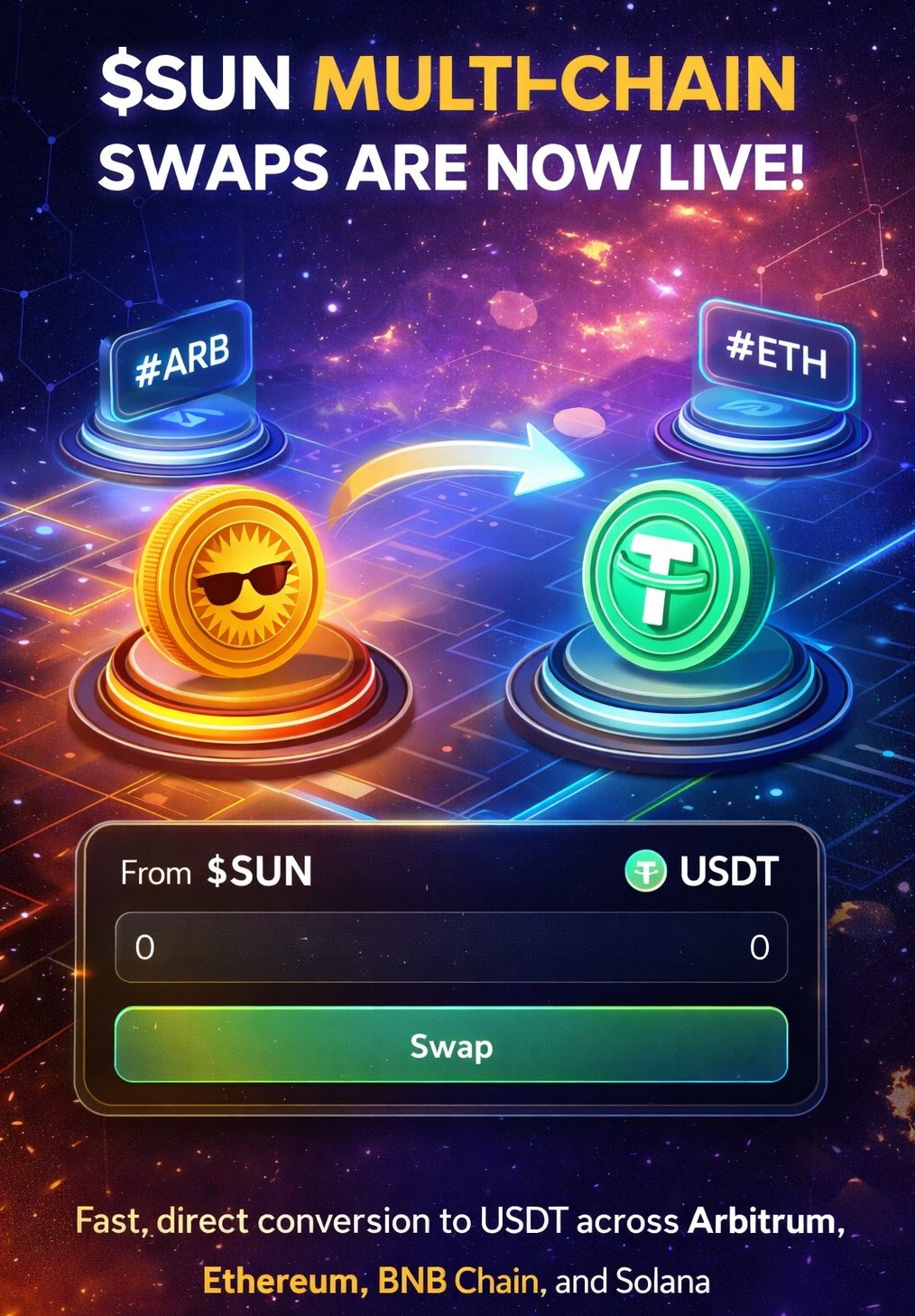 Multi-Chain Swap dla $SUN jest już dostępny, umożliwiając płynne konwersje między $SUN a USDT w sieciach głównych.