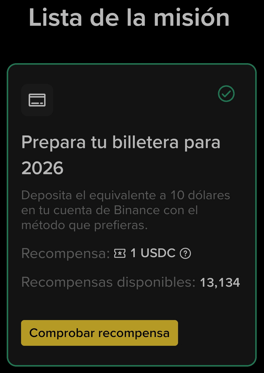 Skończ misje noworoczne, aby zdobyć do 12 USDC! Dodatkowe pieniądze nikomu nie zaszkodzą. Wszystkie misje mają nagrody i możesz je robić w dowolnej kolejności. Pamiętaj tylko, aby je ukończyć przed 31 stycznia. Weź udział i rozpocznij 2026 rok z przytupem z Binance: jest nagroda za każdą ukończoną misję i jedna dodatkowa, jeśli zrobisz wszystkie. Ekskluzywne dla użytkowników w Boliwii, Meksyku, Paragwaju i Wenezueli.