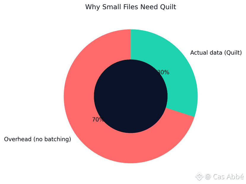 A collection of NFTs of 10,000 NFTs should have at minimum 20,000 small files (images + metadata). In the absence of batching, this is very costly and time-consuming. Quilt allows the grouping of those files effectively, making them cost-effective and large collections practical on decentralized infrastructure.