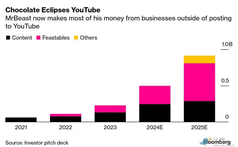 W jaskrawej sprzeczności z treścią jest jego marka czekolady, Feastables. Publiczne dane pokazują, że w 2024 roku Feastables osiągnęło sprzedaż wynoszącą około 250 milionów dolarów, co przyczyniło się do zysków przekraczających 20 milionów dolarów. Było to pierwsze zrównoważone i powtarzalne źródło przepływu gotówki dla Beast Industries. Do końca 2025 roku, Feastables weszło do ponad 30000 fizycznych sklepów detalicznych w Ameryce Północnej (w tym Walmart, Target, 7-Eleven itd.), co znacznie zwiększyło możliwości sprzedaży poza marką.