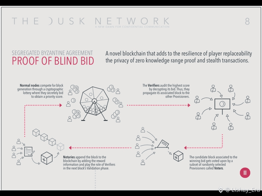 What struck me immediately was SBA’s segregation. Unlike classical BFT systems where every node performs every task—leading to bloat, inefficiency, and performance ceilings—Dusk divides the consensus pipeline into distinct roles: provisioners, block generators, and verifiers. This division isn’t decorative. It isolates responsibilities the same way regulated workflows isolate trading desks, settlement operations, and compliance oversight. And the more I thought about it, the more I understood that Dusk’s consensus isn’t structured like a blockchain—it’s structured like a financial market infrastructure system masquerading as a blockchain.