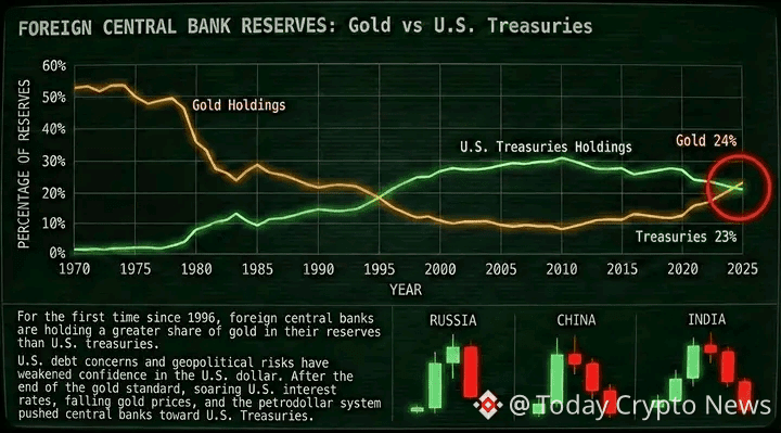 🚨 GOLD HAS OVERTAKEN U.S. DEBT IN GLOBAL RESERVES FOR THE FIRST TIME IN DECADES 🧠