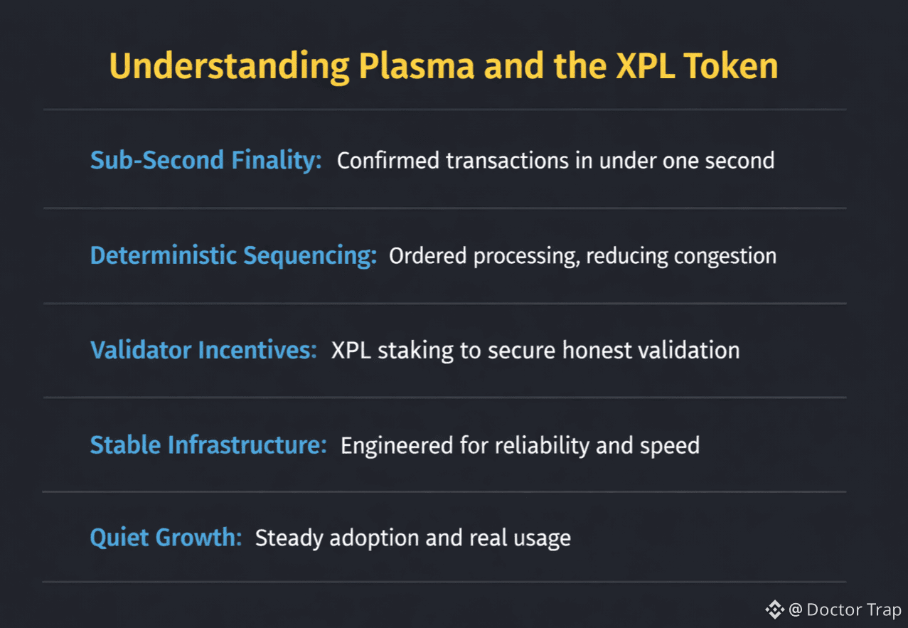 When I step back, XPL feels less like a speculative asset and more like a system component. It secures sequencing, finality, and governance without demanding attention. I’ve watched tokens fail when they tried to do too much. Plasma keeps XPL focused. That focus supports sub second finality by keeping incentives clean. No excess, no noise.