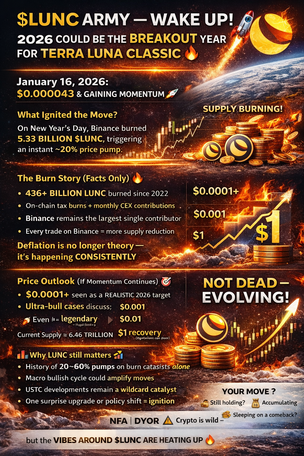 Na dzień 16 stycznia 2026 roku, $LUNC handluje w pobliżu $0.000043, a momentum wyraźnie rośnie.