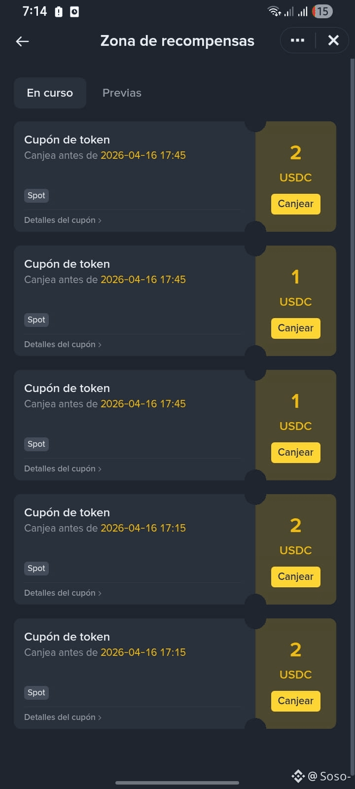 Acabo de revisar mi zona de recompensas luego de 24 horas de haber hecho las misiones y me encuentro con algunos cupones de token $USDC