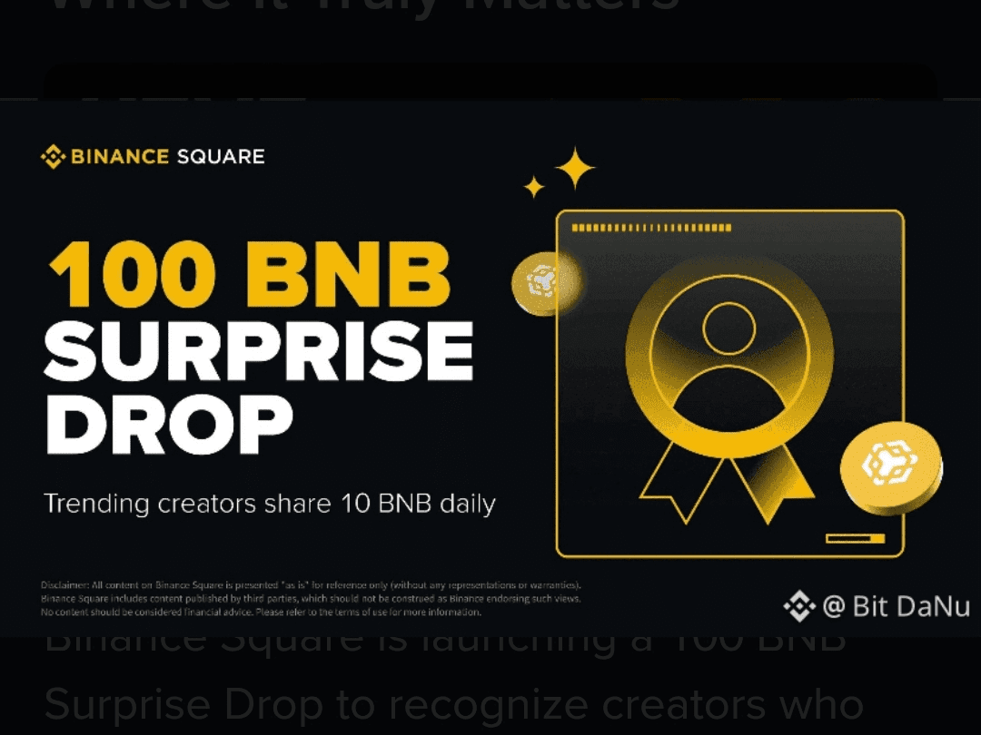 Binance Square uruchamia 100 BNB Surprise Drop, aby docenić twórców, którzy konsekwentnie dostarczają wysokiej jakości, wysokiego wpływu treści. Ta inicjatywa opiera się na jednym podstawowym przekonaniu: silne społeczności rozwijają się, gdy wartościowe pomysły i znaczące wkłady są nagradzane.