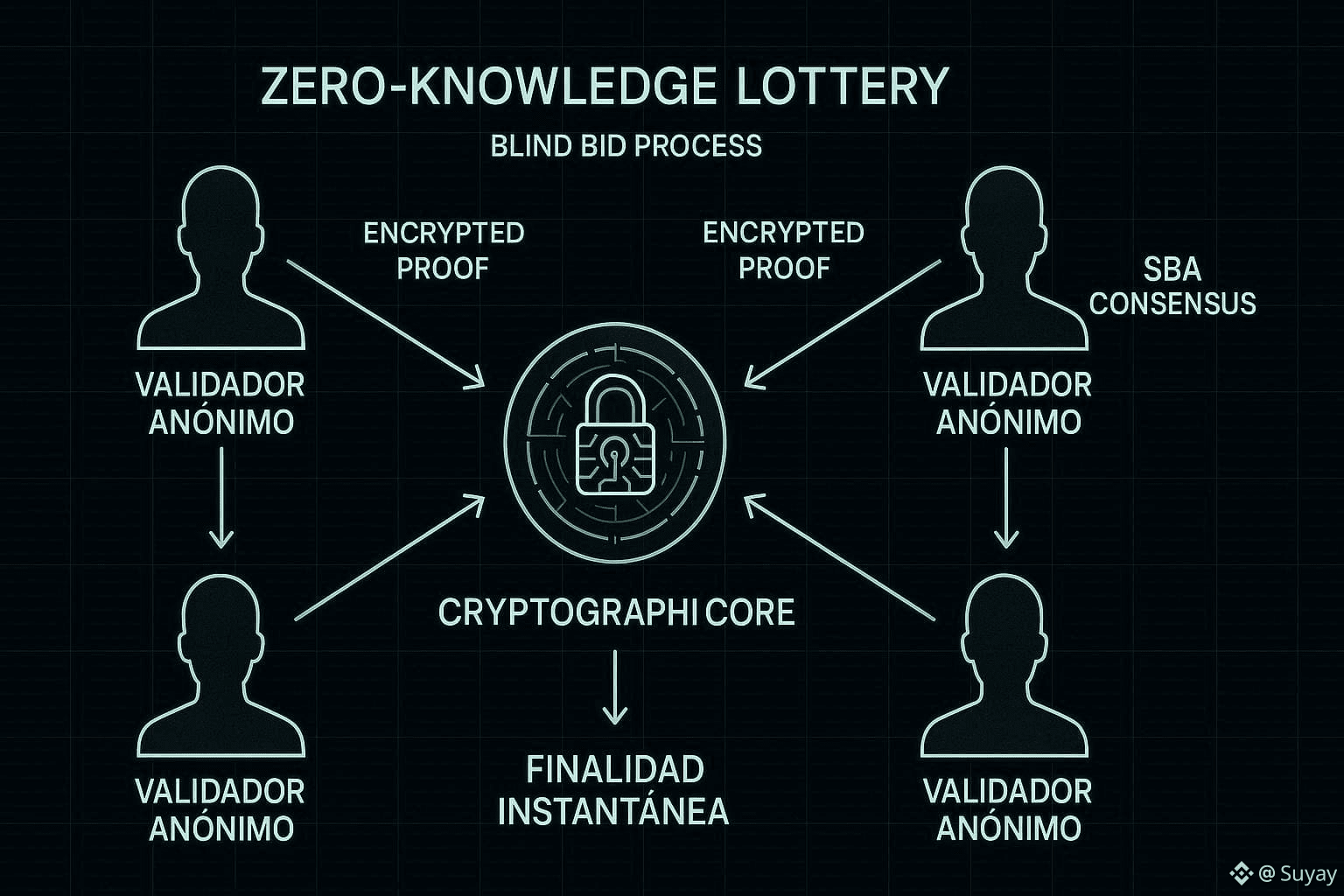 Este proceso es la base del mecanismo de consenso SBA (Segregated Byzantine Agreement). A diferencia del Proof of Stake tradicional, donde los validadores son conocidos y predecibles, en Dusk los validadores son elegidos de forma aleatoria y secreta para cada bloque. Es como un sorteo donde el ganador solo se revela a sí mismo en el último microsegundo, justo cuando ya procesó la transacción. Para un atacante externo, la red es un blanco móvil imposible de fijar. Es una seguridad de grado militar aplicada a las finanzas digitales.