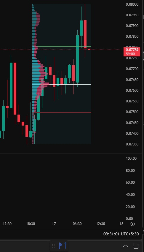 Instead of guessing support and resistance, this indicator reveals them visually. The Point of Control (POC) highlights the price where the highest trading activity occurred, while the Value Area High (VAH) and Value Area Low (VAL) mark the zone where most of the volume is concentrated. These levels act like magnets for price and often become strong decision zones.