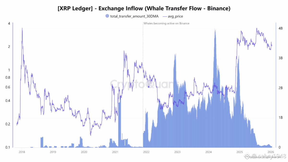 في الواقع، كشفت بيانات CryptoQuant أن تدفقات الحيتان إلى Binance وصلت إلى أدنى مستوى منذ عام 2021.