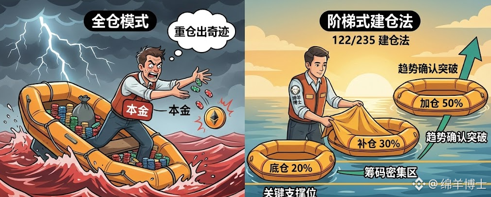 我经常看到有人用全仓模式,把所有的本金都压在一个币种上,还美其名曰“重仓出奇迹”。这种做法在牛市初期或许能让你暴富,但在山寨季来临前的震荡洗盘中,99%的情况是你会倒在黎明前的黑暗里。