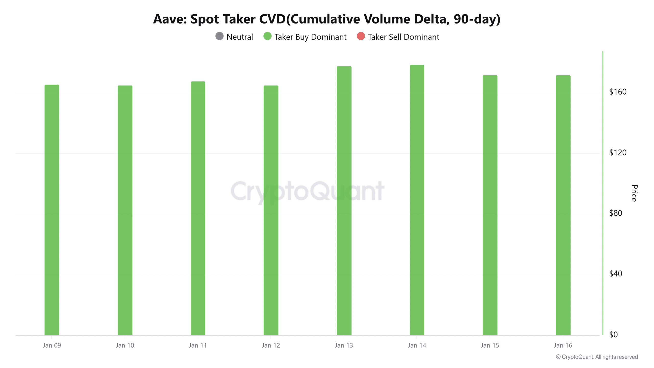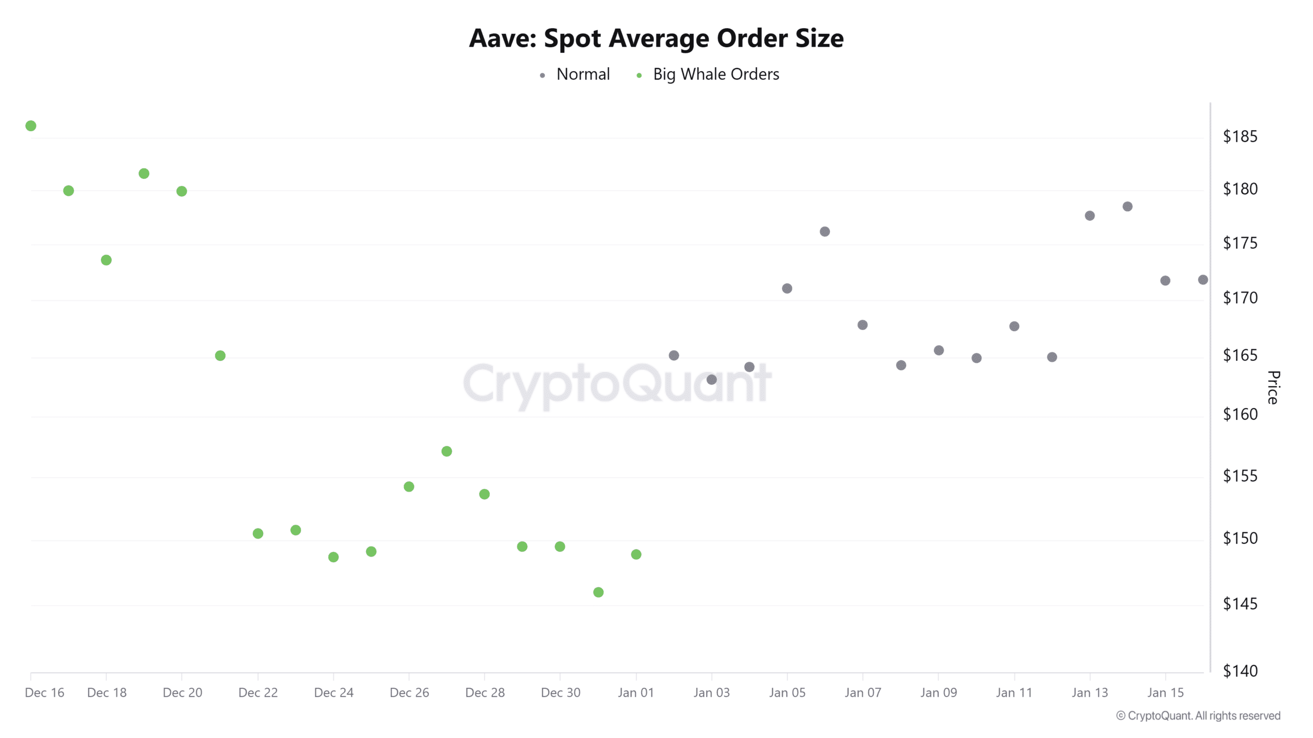 Od początku 2026 roku ruchy wielorybów AAVE były bardzo rzadkie. Zgodnie z danymi CryptoQuant dotyczącymi średniej wielkości zamówień na rynku spot, od 1 stycznia nie pojawiły się wyraźne zamówienia wielorybów, co również odzwierciedla, że instytucje i duże fundusze w poprzednich okresach wybrały obserwację lub tymczasowe wycofanie się, co wpłynęło na ogólny słaby nastrój na rynku.