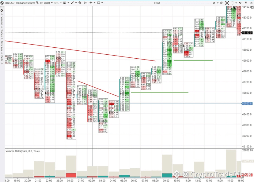 • Delta: Колір кластера змінюється залежно від того, хто переважав. Якщо на рівні було більше покупок — він зелений, якщо продажів — червоний.