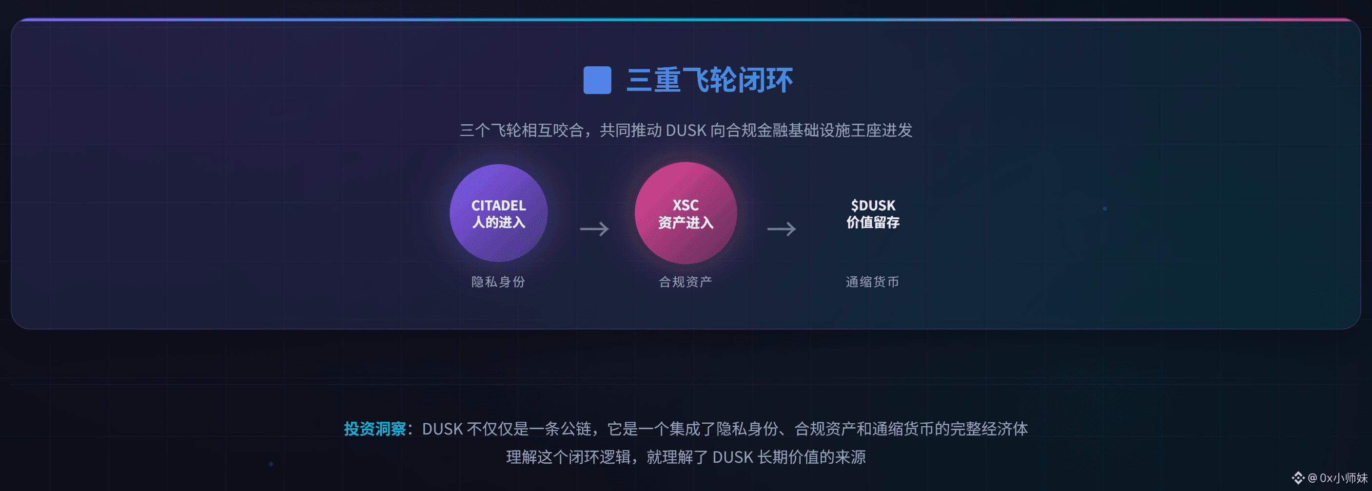 Citadel 协议解决了人的进入问题,XSC 标准解决了资产的进入问题,而代币模型则解决了价值的留存问题。这三个飞轮相互咬合,共同推动着 DUSK 向着合规金融基础设施的王座进发。