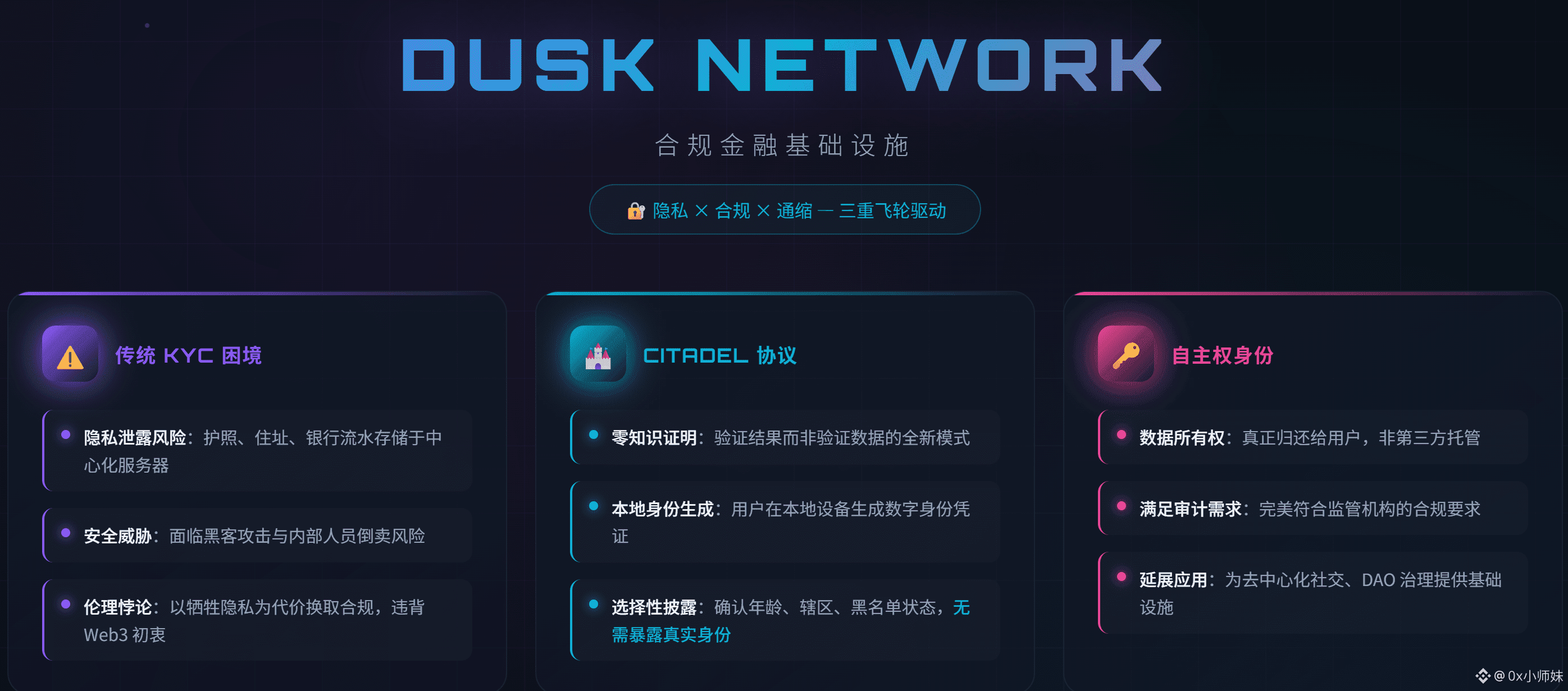 Web3 行业长期以来面临着一个无法回避的伦理与法律悖论,那就是如何在满足监管机构对实名认证的强制要求的同时,捍卫区块链用户的数字隐私权,而 @Dusk 的 Citadel 协议给出了目前最完美的答案。