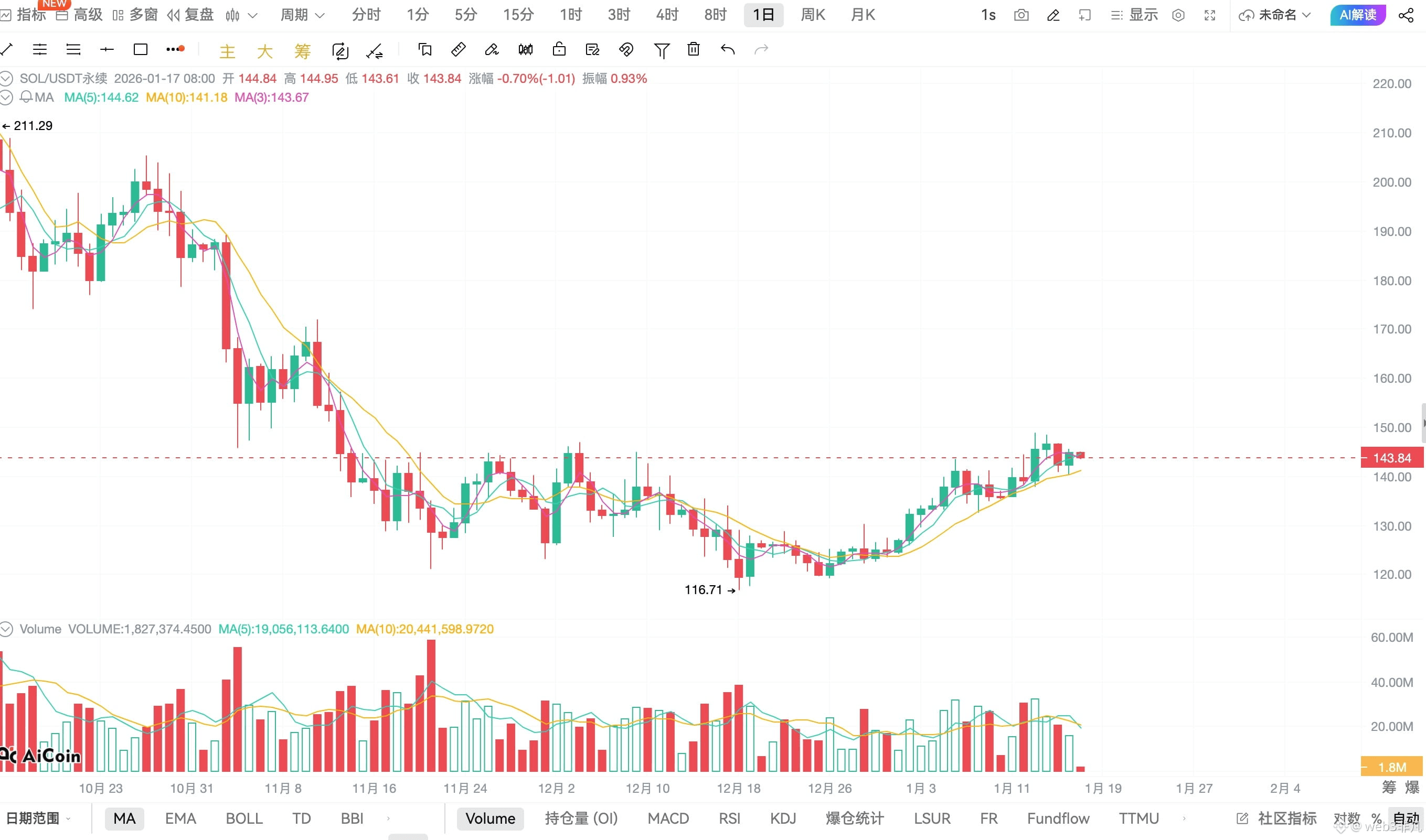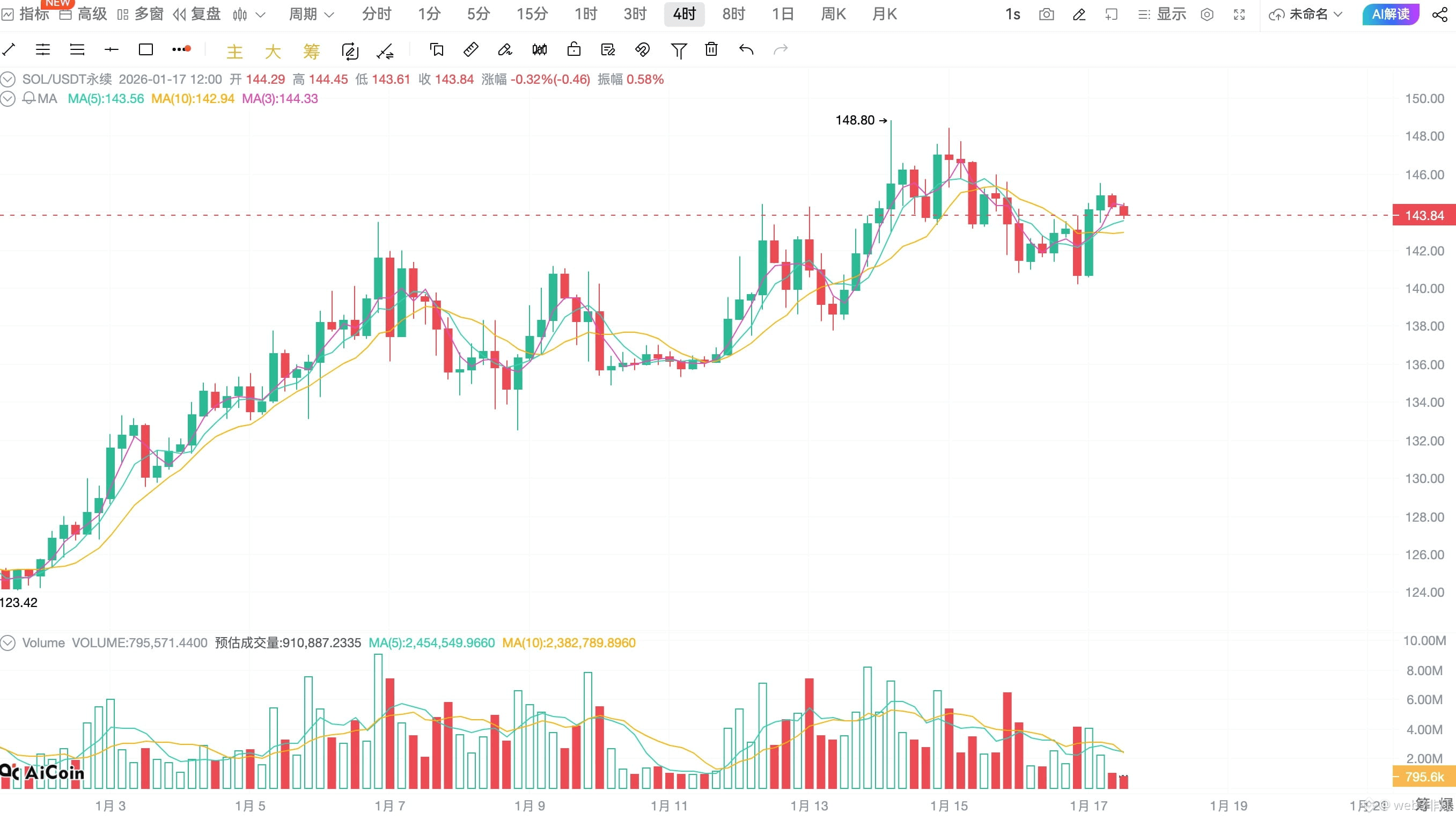 💰 SOL 现价:143.8 USDT