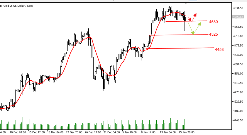 W obliczu obaw o potencjalne zaostrzenie sytuacji w Iranie, ceny złota mogą utrzymać silny momentum. Nowa presja zakupowa może nawet poprowadzić ceny w kierunku historycznego maksimum 4 642,97 $. Jednakże, jeśli ryzyka geopolityczne znacznie się zmniejszą, realizacja zysków może wywrzeć presję na złoto z powrotem w kierunku przedziału 4 525,40 $-4 458,49 $. Ogólnie: Złoto spadło poniżej psychologicznego poziomu 4 550 $, ale nie udało się utrzymać spadku, utrzymując trend wzrostowy! W przyszłym tygodniu skup się na krytycznym wsparciu 4 525 $—również na lukę pozostawioną z poprzedniego rajdu! (Również monitoruj wiadomości geopolityczne w weekend, aby uzyskać lepsze wskazówki dotyczące handlu złotem w poniedziałek) Kontynuuj priorytetowe traktowanie zleceń kupna w handlu! Otwarcie w poniedziałek prawdopodobnie zobaczy krótkoterminowe kontynuowanie trendu wzrostowego! Krótkoterminowa strategia: Kup: 4582-85 TP: 4615--18-20 SL: 4570