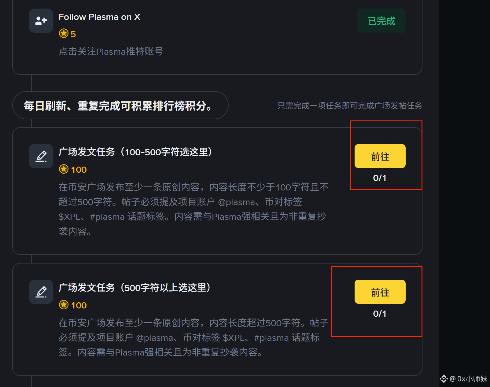 重头戏在这里!昨天 Plasma 在币安广场搞了个大动作。