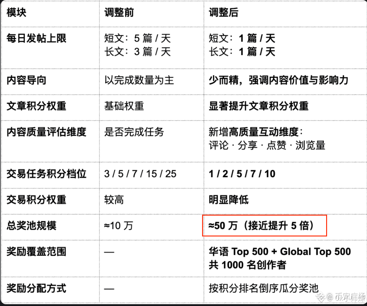拒绝内卷:不需要你像个复读机一样水帖。这次主打一个“轻松”,规则简单直接,只要你发的内容沾边,不管是聊技术、聊行情还是聊生态,只要带上标签,一天发两贴,就能算有效参与。