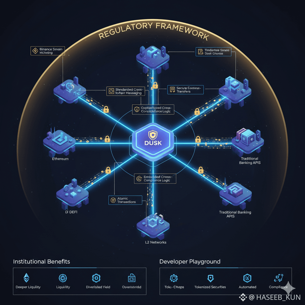 In the evolving landscape of digital finance, isolation is no longer an option. A blockchain that cannot interact with others is like a city cut off from trade routes—its growth is stunted, its influence constrained. Dusk, from the outset, recognized this challenge. Its mission is not only to offer privacy and compliance but to act as a connective hub, a central junction where regulated digital assets can move freely across chains while remaining secure, auditable, and compliant. In a world crowded with siloed networks and fragmented liquidity, Dusk stands apart: it enables assets to flow, interact, and evolve, turning static holdings into dynamic instruments of opportunity.