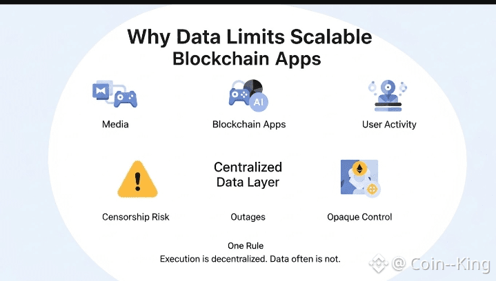 Most blockchain discussions focus on execution speed and low fees, but real applications break down for a different reason: data. Scalable apps need to store and access large volumes of information such as media files, user activity, game states, AI inputs, and historical records. Token transfers alone do not solve this. When data lives on centralized servers, applications inherit censorship risk, outages, and opaque control.