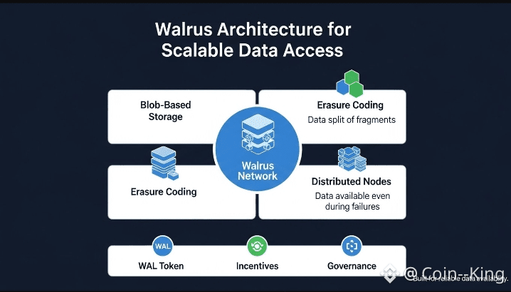 Walrus is built to handle this overlooked layer. Its architecture is designed around data availability for real applications. Using blob-based storage, Walrus allows large data objects to be stored efficiently without overloading the base chain. Through erasure coding, each dataset is split and distributed across multiple nodes, ensuring that data remains accessible even when parts of the network fail. This shifts the focus from theoretical decentralization to operational reliability.