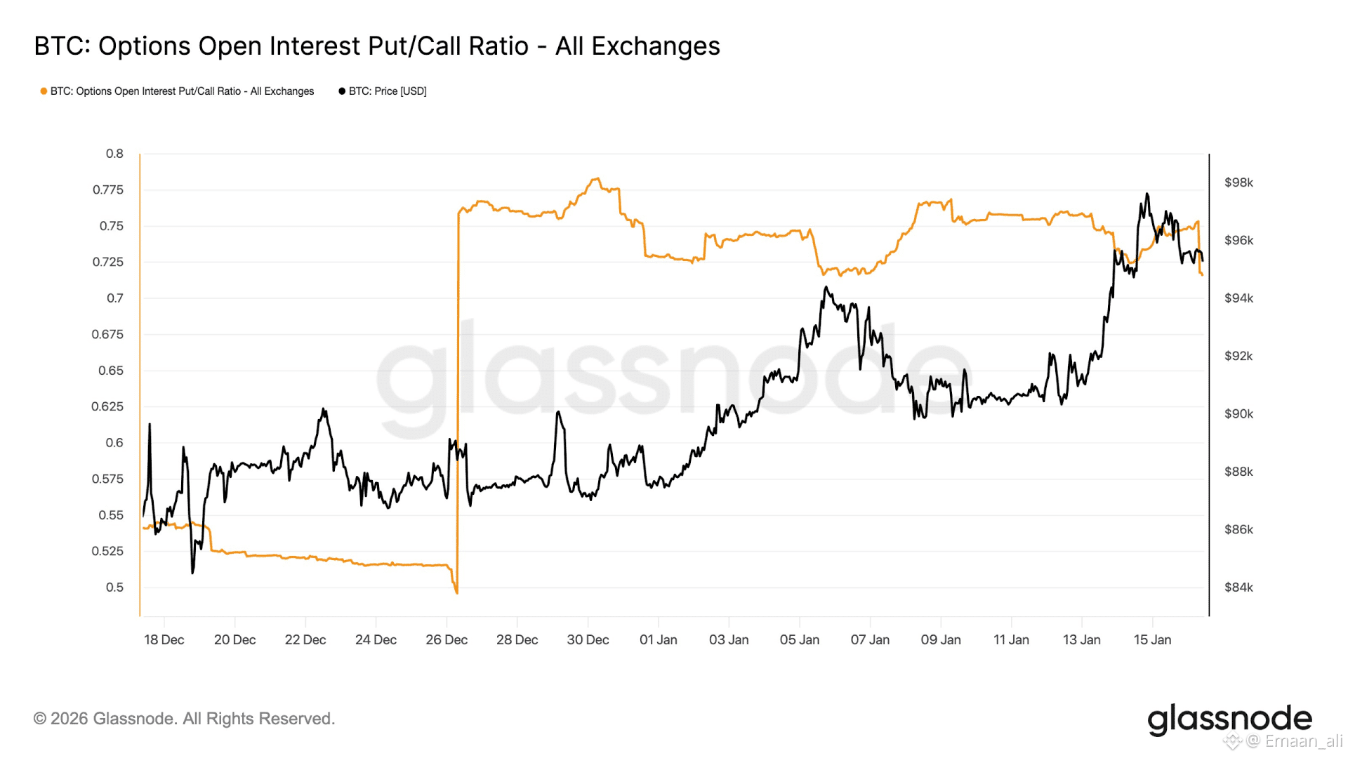 To put it in perspective, a 0.71 put/call ratio means that out of every 100 options, 71 are calls (bets on the price going up). In practice, this reflects “renewed” bullish positioning, with more traders favoring calls over puts.