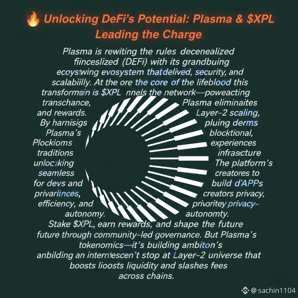 @Plasma is rewriting the rules of decentralized finance (DeFi) with its groundbreaking ecosystem that delivers speed, security, and scalability. At the core of this transformation is $XPL—the lifeblood of the network—powering transactions, governance, and rewards. By harnessing plasma’s Layer‑2 scaling, Plasma eliminates the bottlenecks pluing traditional blockchains, unlocking seamless experiences for devs and investors.