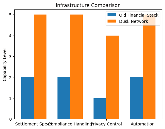 To, co wyróżnia Dusk, to jego skupienie na budowaniu infrastruktury dla prawdziwych rynków finansowych, a nie tylko tworzeniu kolejnego miejsca do handlu tokenami. Cel jest prosty, ale ambitny: uczynić aktywa finansowe naprawdę cyfrowymi, zajmując się rozliczeniami, zgodnością, własnością i egzekwowaniem bezpośrednio na łańcuchu.