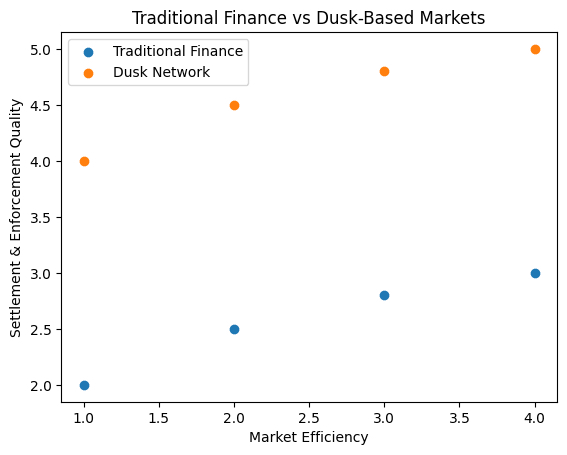 Rozliczenie na Dusk odbywa się w ciągu kilku sekund i jest ostateczne. Po zakończeniu transakcji nie ma okresu oczekiwania ani możliwości jej cofnięcia. Tego rodzaju deterministyczne rozliczenie eliminuje wiele niepewności, która występuje w tradycyjnych systemach finansowych i upraszcza sposób, w jaki aktywa poruszają się między uczestnikami.