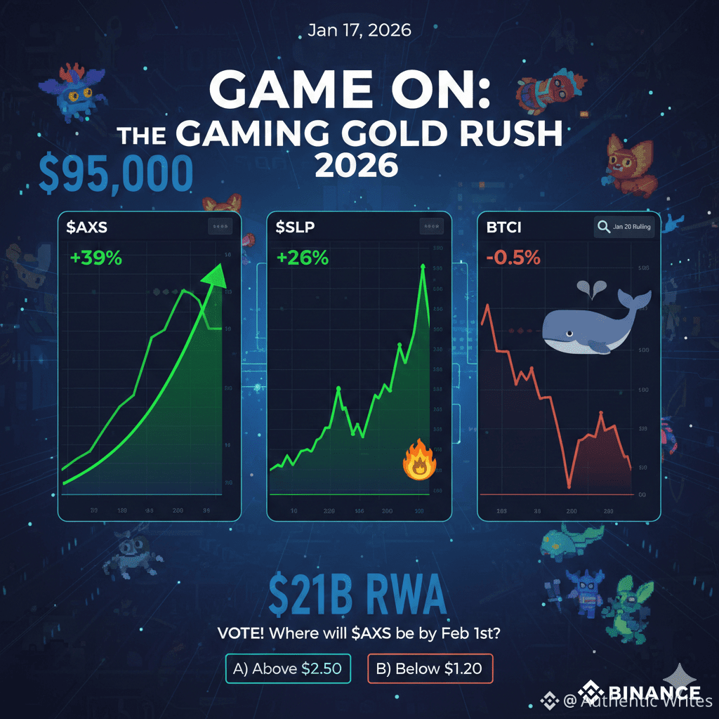 While Bitcoin $BTC stays locked in a consolidation phase near $95,000, the "dead sector" of 2024 is suddenly the loudest room in the house. Today, Axie Infinity $AXS and Smooth Love Potion SLP are leading a massive GameFi rally.