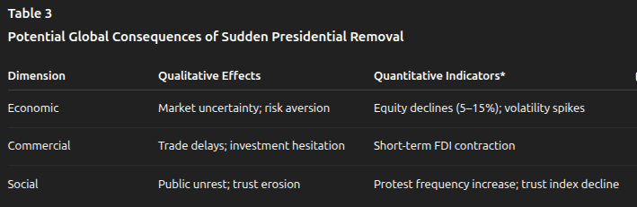 Potential Global Consequences of Sudden Presidential Removal
