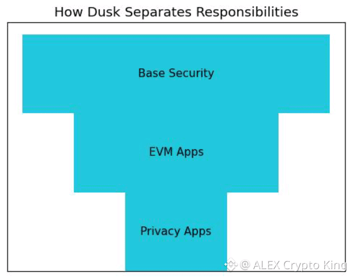 Instead of forcing one layer to do everything, Dusk splits responsibilities into layers that do one thing well.