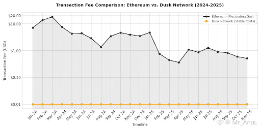 Moreover, Dusk’s design philosophy keeps transaction costs predictable. By avoiding Ethereum’s global blockspace competition, the network minimizes spikes and ensures financial operations remain cost-effective. Predictable fees plus faster consensus equals reduced operational risk.