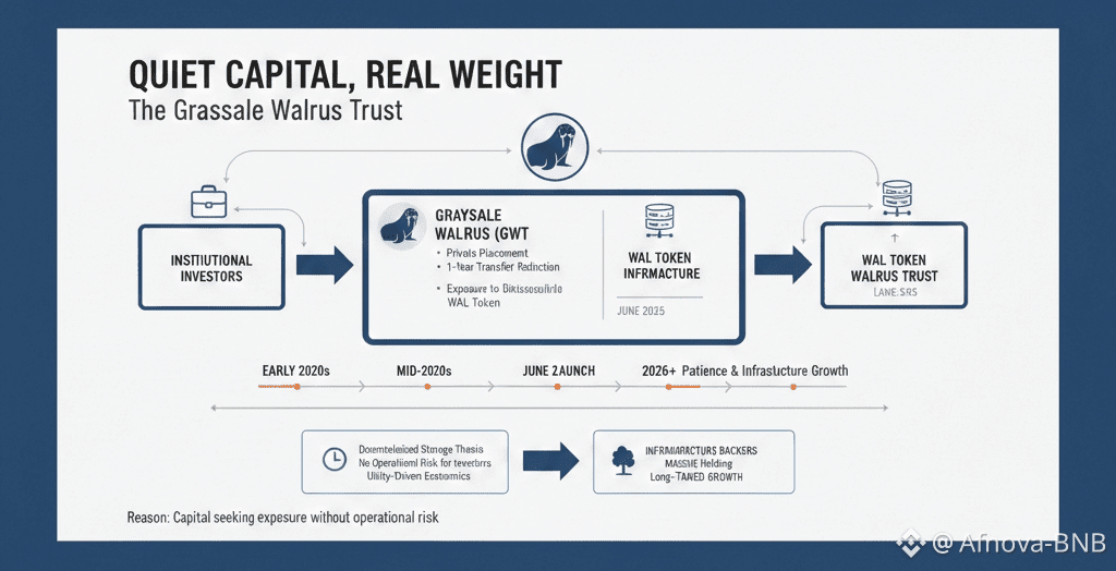 @Walrus 🦭/acc did not enter institutional awareness by chance. When the Grayscale Walrus Trust was formed in June 2025, it was not an attempt to capitalize on hype or perfect narrative timing. It was a response to a slower, more persistent pressure that has been building across DeFi capital seeking exposure without being dragged into operational risk it never intended to manage.